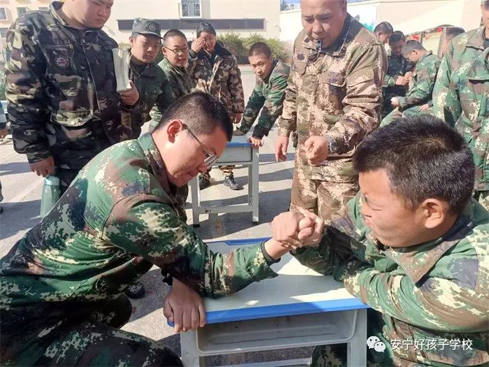 有的由于力量懸殊,很快敗下陣來;有的趁對方不備,猛往自己懷中一壓,還沒等對方反應(yīng)過來,手已經(jīng)被壓在桌上了;有的相持不下,鼓著腮、瞪著眼,臉漲得像個紅蘋果;有的不甘示弱,拼命想把對方的手壓下去,無奈還是沒有還手之力。場上的啦啦隊員,有的大聲喊加油,有的急得直跺腳,有的不停地說道“他太強了,簡直是秒殺!”