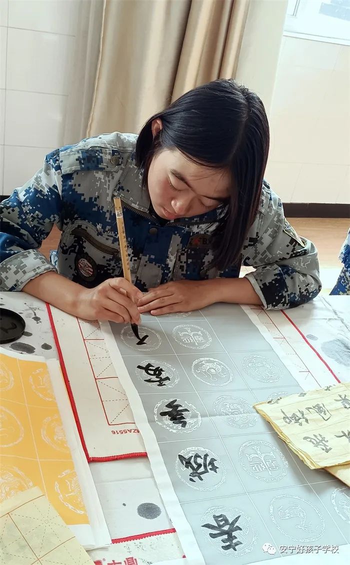 中華文化源遠流長,書法文化博大精妙。毛筆以竹為身,象征著君子寧折不彎的高潔,白紙黑字,寓意君子行有界,意有止,黑白分明不逾矩。在書寫的過程中,孩子們需坐姿端正,正確執(zhí)筆才能寫出端正的漢字,哪怕性子最跳脫的孩子,在此時也要卸下心中的煩躁,端正執(zhí)筆,緩緩而就。練習(xí)書法不僅僅是為了讓孩子們寫得一手好字,更重要的是練筆就是練心,讓孩子們在傳統(tǒng)文化的浸潤與滋養(yǎng)中,感受古代謙謙君子的舉止,感受“靜”與“修”,在內(nèi)觀與內(nèi)斂之間感應(yīng)遠古智慧的感召。